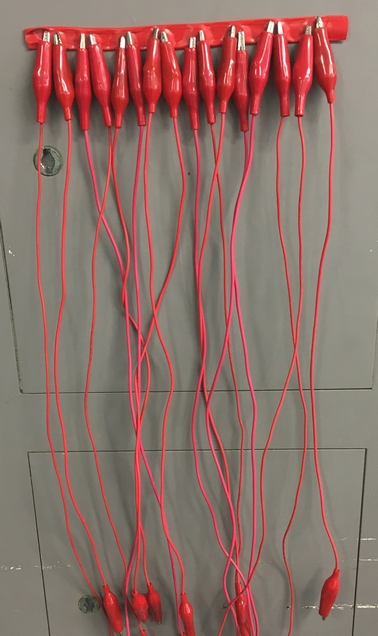 多くの場合、ミノムシクリップやワニ口クリップ付き導線をよく使います。