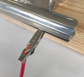 写真のように「目玉クリップ」を木片に固定したものを利用すると便利です。