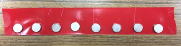 の粘着面を上にして、そこにネオジム磁石を同じ極が上になるように並べていきます。